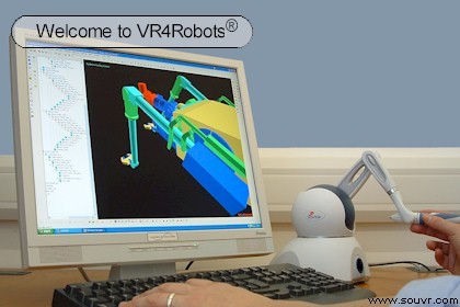 VR4Robots®允许用户使用鼠标、操纵杆等不同的输入设备对虚拟机器人进行操纵并与其互动;尤其是VR4Robots®可以通过SensAble™ OpenHaptics™工具包支持PHANTOM® Omni™触觉设备。PHANTOM® Omni™设备提供了在虚拟环境中控制机械的简单直观的方法,其力反馈功能可以帮助操纵人员更好地与环境(通过触摸)互动并可以感觉到移动界限。