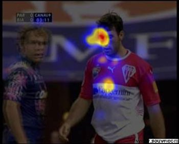 该图显示出30名参试者在一帧时间里的平均商标注视时间热点图