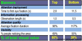 其次, 研究发现位于网页顶部的广告的关注度要比位于底部的高2.3倍。