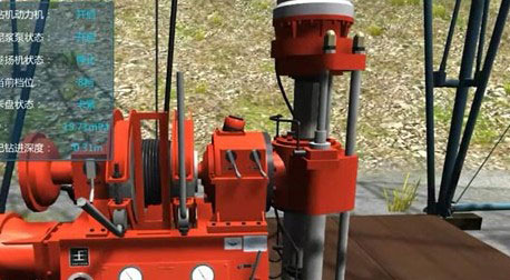 系统运用虚拟现实技术,生动真实的模拟三维钻探作业环境,包括进行钻探作业时,地上与地下设备运行及发生故障时的状态。学生在使用该系统时,有身临其境的感觉。通过该系统,学生能够交互的查看各种设备,如钻机、钻头、压力机、电动机,可以动态的查看钻机的主要组成部分,使学生能够区分不同型号间钻机的区别,实时动态的查看钻探过程。该系统还可以方便老师随时掌握学生的学习成果,老师在系统中设置场景参数,学生根据老师配置的参数场景,在系统中进行判断及操作,并进行自动评分,老师可以很直观的了解学生的学习效果。