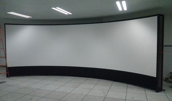 弧形幕也可称为:柱形幕,环形幕,是虚拟现实、仿真系统专用屏幕,适用于多通道视景仿真系统。一般为硬幕。具有高沉,广视角等特点屏幕基材为树脂复合材料,表面光学图层。能够排除90%以上的环境光。在视景仿真应用环境中,弧幕较平面幕有更大的视角,会使用户产生强烈的沉浸感,应用效果比平面幕好得多。