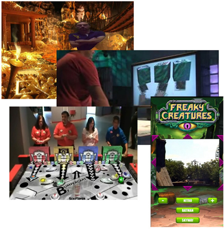 游客可以直接的进入通往虚拟的世界中,例如:一千零一夜、宇宙飞船、鬼屋、监狱等,他们的样子常常被变型在屏幕中,当然他们也可以使用魔力板来变现他们的想象事务