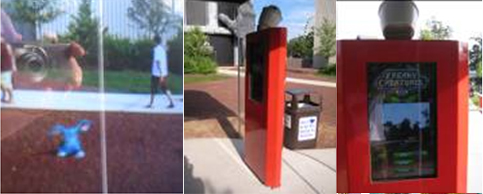 游客经由一个触控面板来指挥一具遥控摄像机,他们必需找出躲藏在园区不同的地方的虚拟怪物
