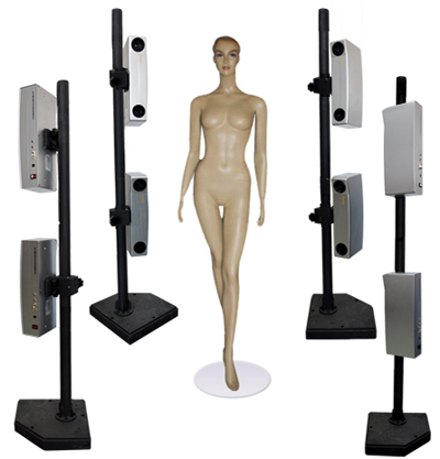 - 多机系统可以从前后不同方向依次自动的瞬间完成人体三维数据的采集,并且可以自动完成拼接过程;