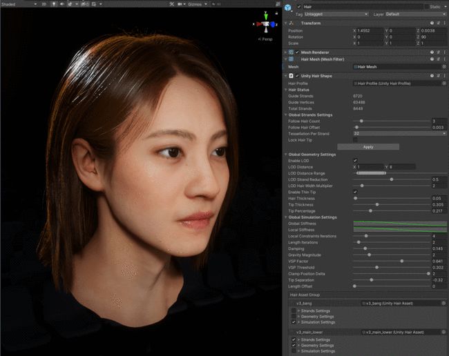 Unity最近发布了全新的头发系统。基本头发制作流程是用Maya X-gen来做头发,X-gen主要工具也是现在很多影视团队的选择。之后再导到Unity里,生成tfx文件并在Unity里做头发的渲染。这套头发工具集成了AMD的头发技术,所以格外逼真。