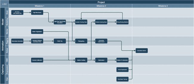 整个过程很简单,首先要根据FaceCode标准扫描极限表情,由模特在光场设备里做出那些表情,并被拍摄下来。剩下的事就是关于模型清理工作了,目前这部分也可以交给AI 算法来做从而实现节省人力的目的。