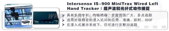 IS-900系列产品为所有浸入式3D产品中,全新一代的精密行动追踪器。有著准确、即时、6DOF、多点追踪等特性,IS-900的体贴设计,安装简易且具有可扩充性的系统,能提供使用者在追踪时,能够不受头部、手部与物件的限制。若与SensorFusion软体并用,采用超音波系统的追踪器,可以使IS-900追踪传输结果,是在每公厘的范围以内,角度在0.1度以下。从CAVE、Power Wall和ImmersaDesk,到展示间和建筑工业,IS-900系列产品,皆能提供您各方面完美、准确的行动追踪器之解决方案。