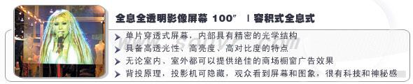 100″全息全透明屏幕能提供空中动态显示,适用于商店,橱窗展示,机场,银行和其它人流密集地段的销售点产品宣传展示,浅蓝色外观更能显示时尚动态。透明的显示允许观看者可以观看屏幕上的图像,还可看穿屏幕有空间感,透视感.这一点对于商店是非常有用的,因为屏幕成为商店内部整体装饰的一部分。