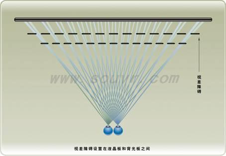 Bolod自由立体显示器是建立在人眼立体视觉机制上的新一代自由立体显示设备。它不需要借助于任何助视设备(如3D眼镜、头盔等)即可提供具有完整深度信息的图像。根据视差障碍原理,利用特定的掩模算法,将展示影像交互排列,然后通过视差屏障由两眼捕捉观察。视差屏障通过光栅阵列(利用摩尔干涉条纹判别法精确安装在显示器液晶板平面上)准确控制每一个像素透过的光线,只让右眼或左眼看到,由于右眼和左眼观看液晶板的角度不同,利用这一角度差遮住光线就可将图像分配给右眼或左眼,经过大脑将这两幅有差别的图像合成为一幅具有空间深度和维度信息的图像,从而使您不需要任何助视设备(如戴上3D眼镜)即可看到3D影像。
