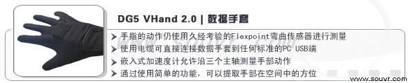 2007年11月:DGTech Engineering Solutions公司在市场上推出全新的VHand数据手套版本。经过完全重新设计的数据手套内部嵌入一块采集板。在同一电路板上已经安装了一个完整的3轴加速度计,可精准测量手的动作和方向,极大增强了该完整传感器的应用领域。手指的动作仍使用久经考验的Flexpoint弯曲传感器进行测量。