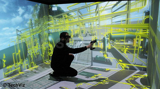 • TechViz VR协同可与TechViz XL配合使用,该3D可视化软件可用于直接显示来自本地应用程序的大型3D数据集或虚拟原型,显示帧率高,对立体3D显示器类型无要求。