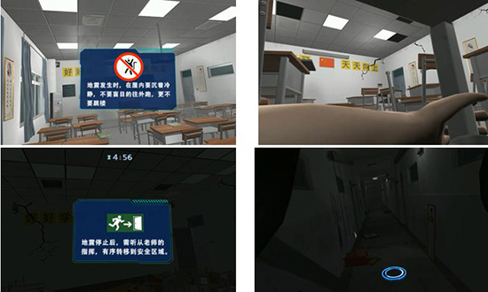 用户可以利用VR眼镜体验更加真实的校园场景。和一般的模拟地震及逃生相比,真实度高,任务性,趣味性,交互性更强,而且体验成本更低,不受实体面积的影响,不受位置限制,随时随地都可以体验学习。