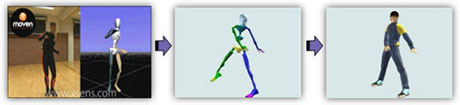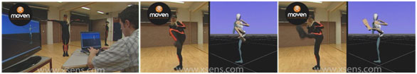 Moven能实时捕捉人体6DOF 的运动,数据通过无线网络传输到计算机中,实时记录和查看动态捕捉效果。Moven最独特之处在于无需外部照相机和发射器等装置,避免了多余的数据传输线或电源线对使用者的行动限制。使用者即使将感应服随意穿在自己衣服里面,都丝毫不会影响动态捕捉的效果。