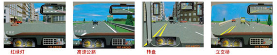 模拟汽车驾驶系统,是基于计算机图形技术,配合虚拟显示技术与多通道显示技术生成逼真的立体的三维道路场景,参训人员通过佩戴立体眼镜可以看到立体的场景,就好像真的在场景之中的感觉。参训人员通过操纵带有力反馈功能的方向盘,和场景中的道路进行实时的交互。你可以在虚拟场景中训练会车、超车、让车等各种技能。参训人员也能体会到汽车驾驶的基本原理和基本知识,学习驾驶汽车的动作要领,感受汽车驾驶过程中的无穷乐趣。你还可以将整个训练过程录制下来并进行回放显示,能通过此功能来分析自己的驾驶训练情况和判断和分析错误原因,特别是训练过程中发生的重大错误!如撞人、撞车、撞障碍物等。此系统非常适合训练毫无驾驶经验的学员或拥有驾驶证的新手的实战练习。