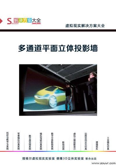 多通道平面立体投影墙是多通道虚拟现实投影系统中的一种半沉浸式大比例VR可视协同环境。系统采用平面投影结构,来增强沉浸感,是理想的设计评审协同和展示平台。如需查看更多内容请点击>>