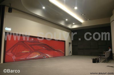 多通道投影墙是通过多台投影机与大型矩形投影屏幕所组成的一个3D互动同步显示的仿真环境。其原理是经由多部图形工作站(Host)通过虚拟现实环幕VR Library以因特网络进行同步工作,其所组成的丛集式式计算机(Cluster)投射组合成一个高分辨率、大型的影像,将观者的视野完全的包覆起来,产生极为真实的视觉与听觉的感受。