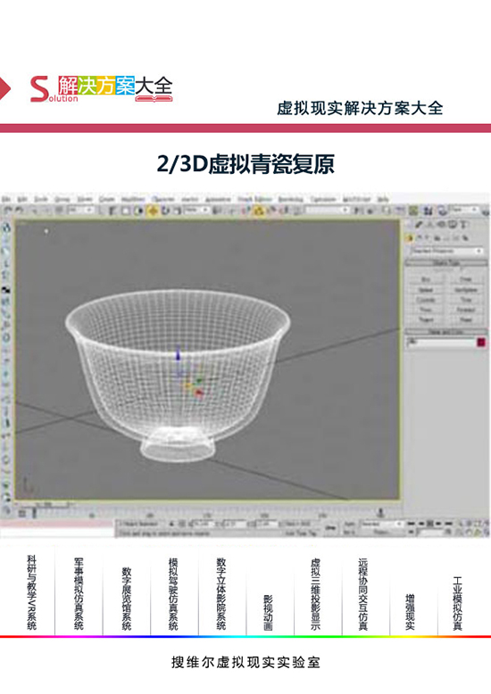 在软件使用上以3D Studio MAX R6 与Photoshop 为主。以下为制作青瓷虚拟复原的工作流程: