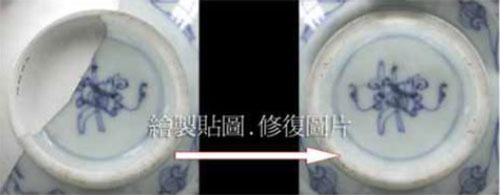b. 为表现修复后的效果,将有破损缺块的照片也修正成无石膏缺口的还原图,图4如下