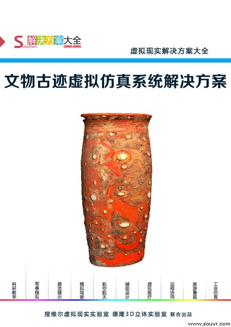 本方案由搜维尔虚拟现实实验室推出。我国是一个拥有几千年悠久历史的文明古国,通过研究古文物对了解、研究中国的历史文明有着极其重要的作用。但是文物在保存过程中,经受着两种因素的破坏,即:①人为的破坏。如古建筑、石窟寺、古墓葬被战火焚毁、被拆除或维修不当失去原貌;铜铁器、书画、竹木漆器、陶瓷等因保护、搬运不当被损坏。②风、雨、雷、电、火、地震、光线、虫害、霉菌等自然因素对文物造成的破坏。所以对具有历史价值、文化价值、科学价值的历史遗留物采取的一系列防止其受到损害的措施是十分必要的。