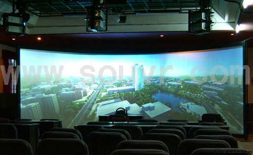 多通道环幕(立体)投影系统是指采用多台投影机组合而成的多通道大屏幕展示系统,它比普通的标准投影系统具备更大的显示尺寸、更宽的视野、更多的显示内容、更高的显示分辨率,以及更具冲击力和沉浸感的视觉效果。
