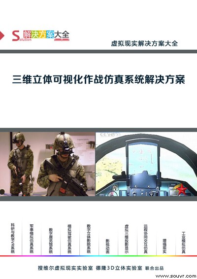 本方案有搜维尔虚拟现实实验室推出。作战仿真实验室是一项重要的军事系统工程,在探索作战实验和部队实战演习里,都有着极其重要的地位和作用,它并不是传统意义上的技术型实验室,而是更着重于未来的“创新性”作战,并对新思想、新概念潜在的作战能力科学地做出评估。目前我军各军兵种根据自身的实际需求已经或正在建立各自的专项实验室,公司立足于运用高科技服务军事仿真实验室建设的指导思想,为客户提供视化仿真实验室的建设和改造方案,利用仿真和虚拟现实领域的最新技术及显示控制的领先科技,为作战仿真实验室提供先进的视觉环境和辅助设备,结合三维GIS系统形成层次清晰、技术先进、集散灵活、功能齐全的一体化作战实验室体系做出贡献。
