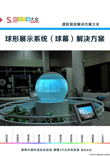 本方案由搜维尔虚拟现实研究室推出,球幕投影技术是一种新兴的展示技术,它打破了以往投影图像只能是平面规则图形的局限。球形显示利用特殊的光学镜头,通过先进的计算机视觉技术和投影显示技术,将普通的平面影像进行特殊的变换,投射到球形幕,形成一个球体影像,使整个产品成为炫目的360度无缝影像球、同时配合环绕立体声音响设备,可将观众带到一个临场震撼、虚实结合的奇妙世界,效果无与伦比。