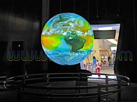 球形显示产品无论是大型活动的演出还是形象宣传,它的展示效果都能给人以全新的精神享受,管理者可以通过计算机操作,不断更换播放内容,如广告、动画、比赛精选节目等,并能与活动主题相配合(比如大型活动演出,可以为这个演出制定专业的播放内容,任何一个活动可以由此进行配合造势)。球形显示作为特殊的光电展品,具有极强的视觉冲击力和形象震撼力,广泛的应用于科普教育、展览展示、广告娱乐及虚拟仿真等领域。