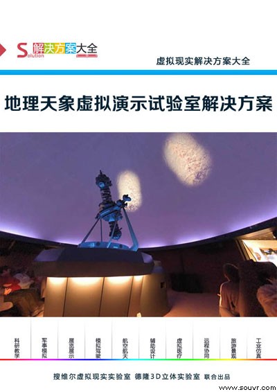 地理天象虚拟演示试验室是在球形投影技术与软件技术相结合的基础上,以及模拟各种地理现象、和星球、天体的各种运行过程,实现立体、动态的显示各种地理、天文、历史、科学等学科知识的多媒体教室。形象的说,就是一座包罗万象的天文和地理科技馆,一个学校开展素质教育、拓展教育和科普教育的综合教育基地。