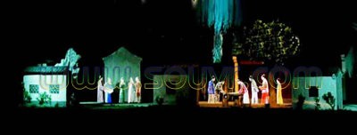 为光学成像创造环境空间,可设置 4--6 个不同场景,配合 4--6 场剧情设计,场景在剧间受可编程控制器控制自动更换。